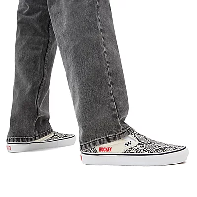Depuis leur première collaboration en 2018, Vans Skateboarding et Hockey ont défini une esthétique singulière qui leur est propre. Cette saison, une nouvelle version des Skate Slip-On poursuit ce partenariat. Caractérisées par des couleurs noir et blanc avec des ornements effet peau de serpent et des lettres rouges audacieuses brodées, les Vans x Hockey Skate Slip-On répondent au style de skate sans compromis de l’équipe Hockey tout en offrant un look distinctif doté de la meilleure technologie de Vans Skateboarding.