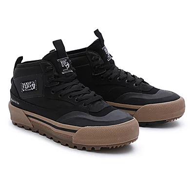 rencontre de deux mondes. Les Half Cab, qui figurent parmi les chaussures de skateboard les plus emblématiques de Vans, se dotent de la technologie de pointe MTE pour offrir le meilleur modèle de coupe intermédiaire de tous les temps. Fruit de 30 ans de travail, les Half Cab GORE-TEX MTE-3 allient un style de skate emblématique à la technologie GORE-TEX MTE-3 respirante et imperméable, à la toute nouvelle isolation Duratherm de GORE-TEX utilisée en exclusivité par Vans et à une semelle extérieure MTE-3 dotée du composé de caoutchouc All-Trac résistant aux intempéries. C’est beaucoup. Et c’est le but recherché. La question est : Qu’est-ce que tu vas en faire ? Leur tige est confectionnée en cuir, en tissu et en fibres synthétiques.