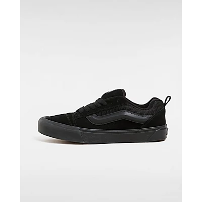 Les Knu Skool sont un modèle réédité des années 90, lorsque les chaussures de skate étaient plus épaisses. Dotées d’une tige en daim et toile, ces chaussures basses arborent une grande languette et un col épais à la cheville, pour un style plus imposant qui se démarque des Old Skool originales.