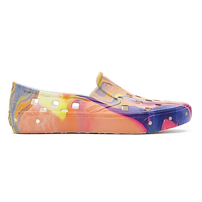 Les chaussures Resin Rainbow Slip-On TRK réinventent la silhouette Slip-On classique. Elles associent tous les codes Vans que tu connais et adores à une construction monobloc injectée résistante, à des trous de drainage respirants évoquant un checkerboard déstructuré et à une semelle oversize à gaufrage inversé pour une adhérence tout-terrain. Légères et entièrement rinçables, les Resin Rainbow Slip-On TRK sont faciles à transporter pour ta prochaine aventure et tu pourras t’y glisser encore et encore…