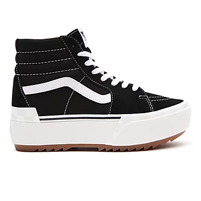 Les Sk8-Hi Stacked en daim et toile rĂ©interprĂštent la silhouette Vans classique pour un modĂšle ultra-stylĂ©. DotĂ©es d’un col rembourrĂ© pour plus de confort, les Sk8-Hi Stacked arborent des finitions oversize, comme une plateforme renforcĂ©e, une semelle extĂ©rieure imposante et une bande de renfort translucide.