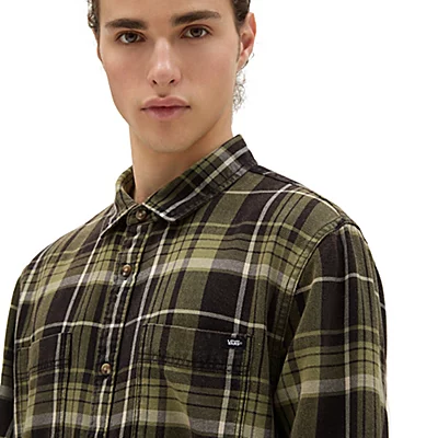 La chemise à manches longues Peddington est réalisée en flanelle de coton d’épaisseur moyenne et boutonnée sur le devant. Elle est teintée en fil et délavée à l’acide. Elle se complète de deux poches de poitrine.