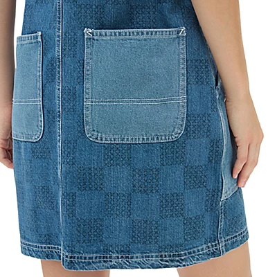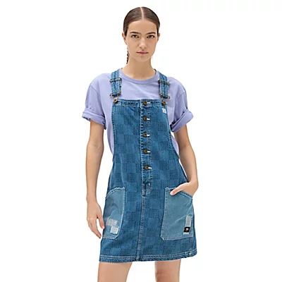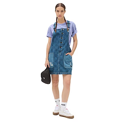 La robe salopette en denim à carreaux Mended peut être portée en superposition ou telle quelle. Cette robe est boutonnée sur le devant et s’accompagne d’attaches en métal inspirées des salopettes. Un motif à carreaux, des détails brodés et deux larges poches sur l’avant complètent le look.