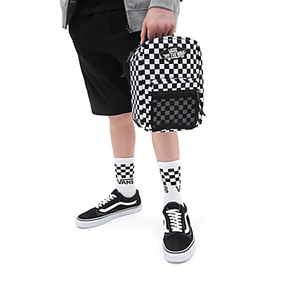 Le sac repas New Skool rend les déjeuners encore plus stylés. Confectionné en polyester et décoré d’un motif checkerboard sur l’ensemble, ce sac repas est équipé d’un compartiment principal zippé, d’une poche avant zippée en maille filet et d’une poignée sur le dessus.