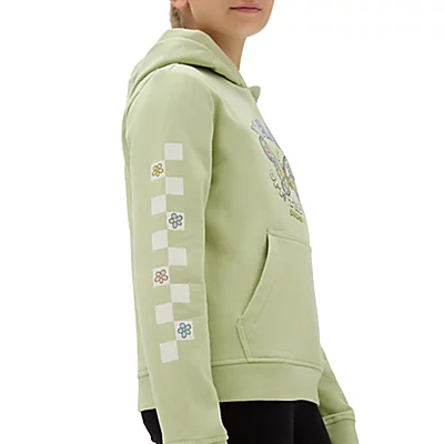 Le sweat à capuche Butterfly Floral pour fille de Vans est doté de manches longues, d’une poche kangourou et d’un imprimé checkerboard à fleurs sur les deux manches. Un logo Vans et un motif de papillon décorent la poitrine de ce sweat à capuche à coupe classique.