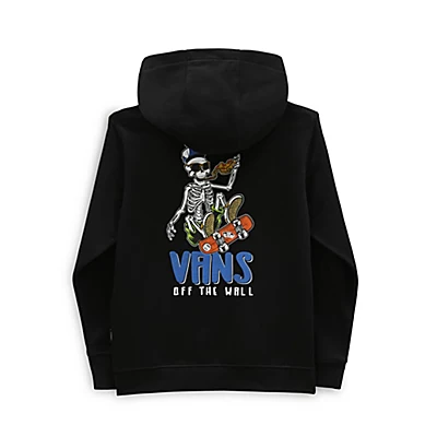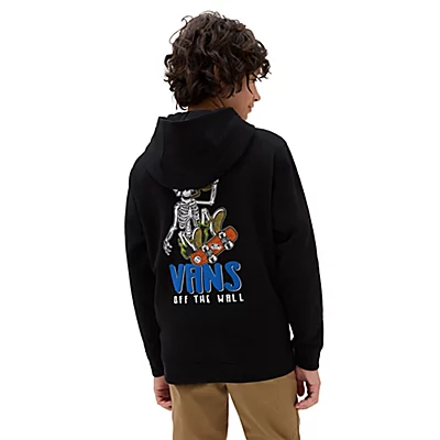 Le sweat à capuche Skull Slices pour garçon de Vans est doté de manches longues, d’une poche kangourou sur le devant et d’un logo Vans Off The Wall à motif de squelette sur la poitrine gauche et au dos.