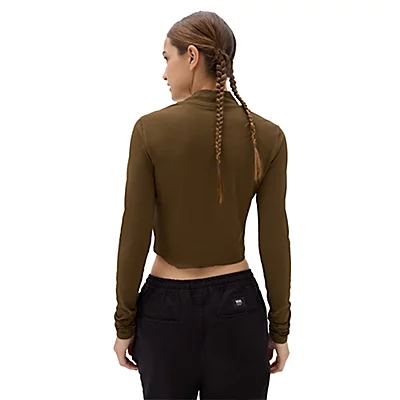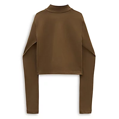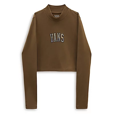 Le t-shirt à manches longues Varsity V Mock Neck Mini de Vans présente un logo Vans sur le devant.