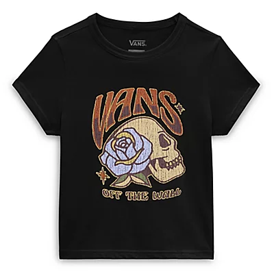 Le t-shirt à manches courtes Affection Mini de Vans présente un col ras du cou et une image de squelette à logo Vans sur le devant.
