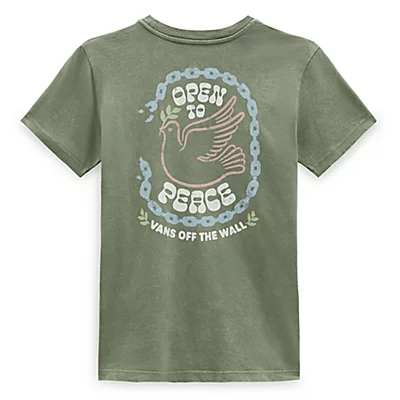 Le t-shirt Open to Peace de Vans présente un col ras du cou, des manches courtes et un logo Vans sur le cÎté gauche de la poitrine et dans le dos.