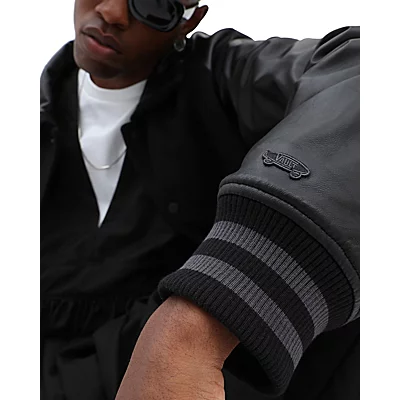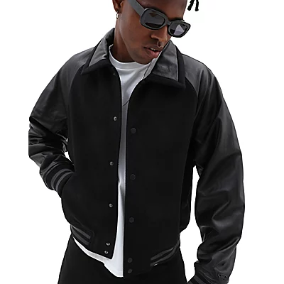 Rehaussée d’une touche vintage, cette veste letterman Vault by Vans x Goodfight est un clin d’œil aux modèles universitaires. Goodfight a travaillé avec Vans pour développer le look distinctif du manteau avec des revers exagérés et un corps carré légèrement raccourci. L’empiècement sur le col imite le détail à double col de Goodfight qui fait référence à la dualité culturelle. Taillée dans un mélange de laine melton et de simili cuir, elle se prête à l’application des différents écussons en chenille qui l’accompagnent, pour une option DIY.